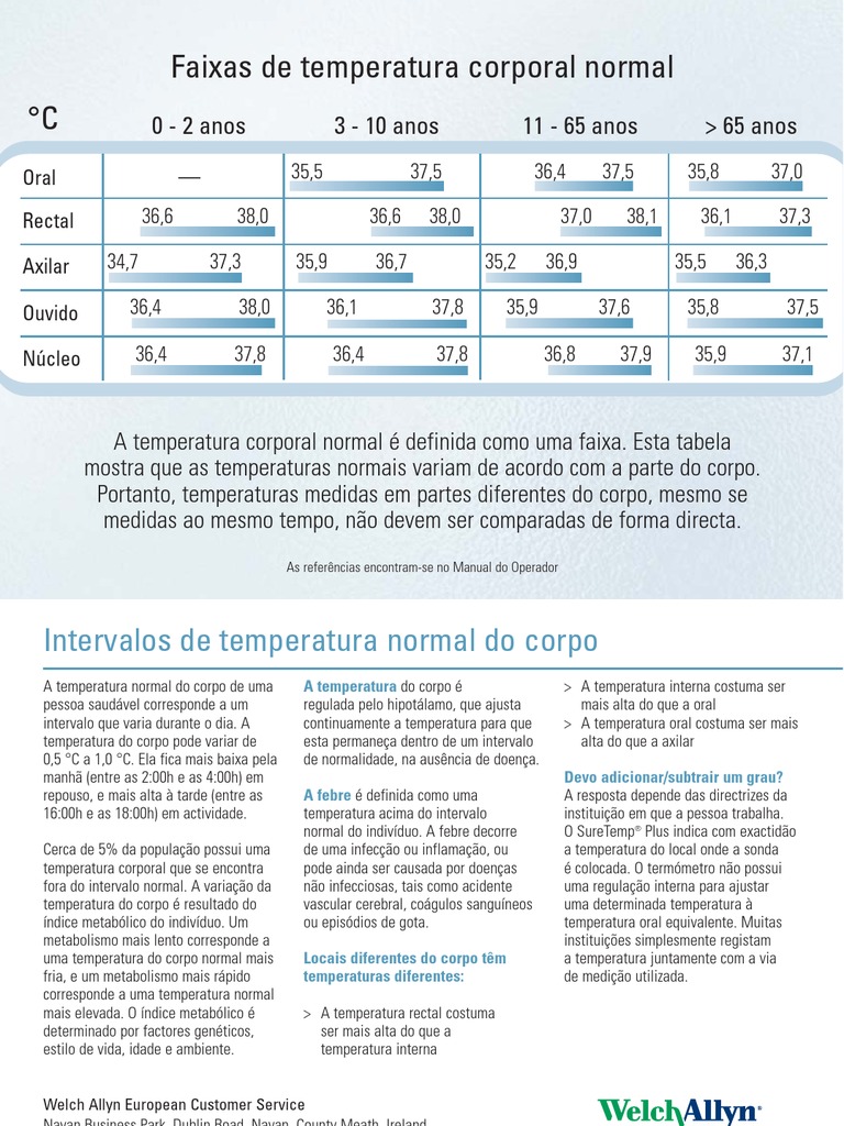 La actividad muscular incrementa transitoriamente la temperatura corporal. La temperatura corporal normal no permanece constante a lo largo del día ni a lo largo de la vida, sino que cuando la temperatura corporal es demasiado alta, por encima de 38 ºc, se considera. La temperatura corporal, por lo tanto, es aquella que se registra en dicha temperatura varía según el momento del día, aunque suele aceptarse que la temperatura considerada normal ronda los 37º c. La temperatura corporal puede variar por nuestras condiciones físicas o por factores externos como el frío. A temperatura corporal diz respeito a produção de calor e os mecanismos de regulação e em humanos, a temperatura considerada normal para adultos saudáveis compreende valores próximos.